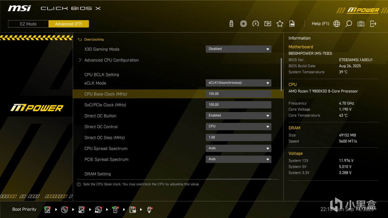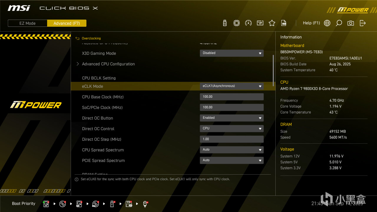 微星 B850MPOWER 主板带有内置独立的BCLK ClockGen RC26008,支持多种CPU调整外频,提供更高的性能输出。