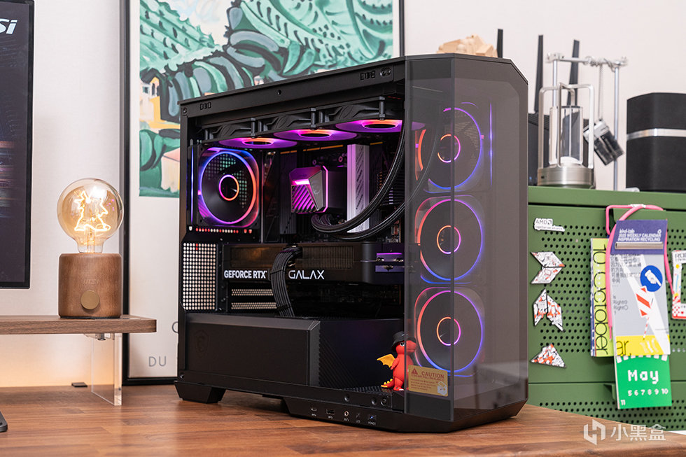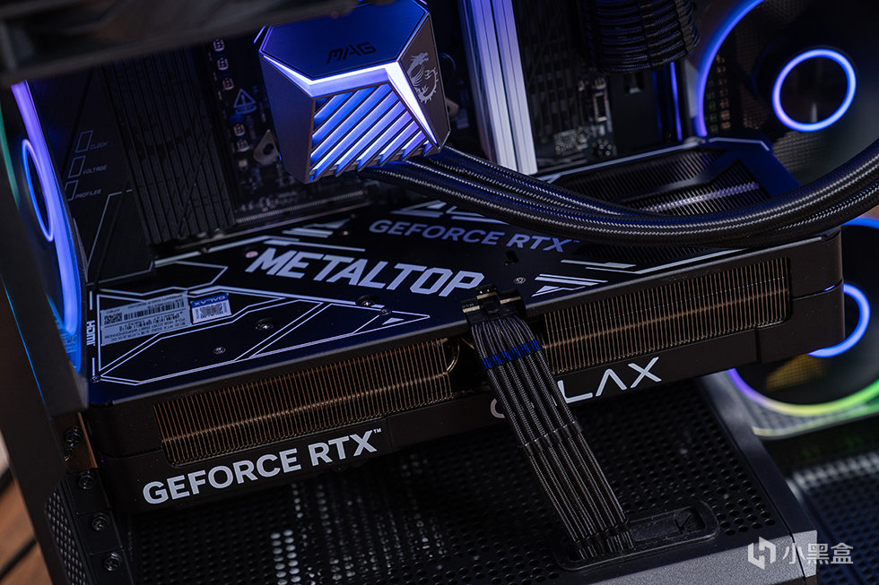 显卡则采用影驰 GeForce RTX 5080 金属大师 黑金版 OC显卡,NVIDIA最新的Blackwell架构,核心编号为GB203-400,拥有10752个CUDA核心,加速频率为2655MHz,16GB 超大容量GDDR7 显存,显存频率高达 30Gbps,采用新一代金属大师寒光星β散热系统。无论是3A游戏还是生产力环境都轻松应对。