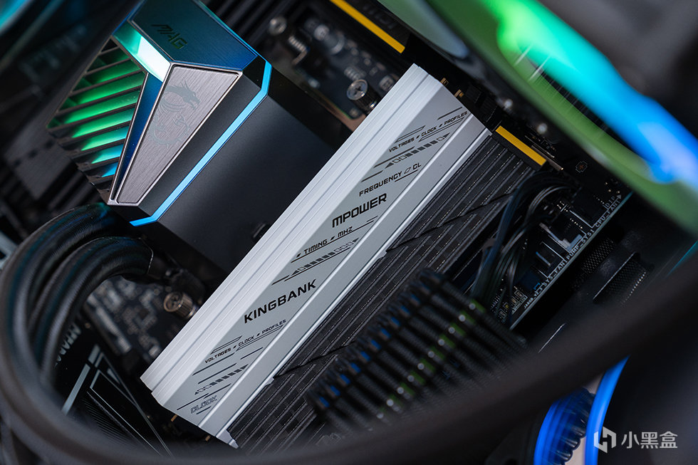 内存则来自微星超频实验室与金百达内存品牌合作建立MPOWER联盟推出配套的专属优化内存:金百达星刃MPOWER联名版,严选原厂原印3G M-Die颗粒,6000Mhz C26超低时序运行 ,专属定制MPower 2mm重甲散热+工业级散热硅脂,颜值与性能双双在线。