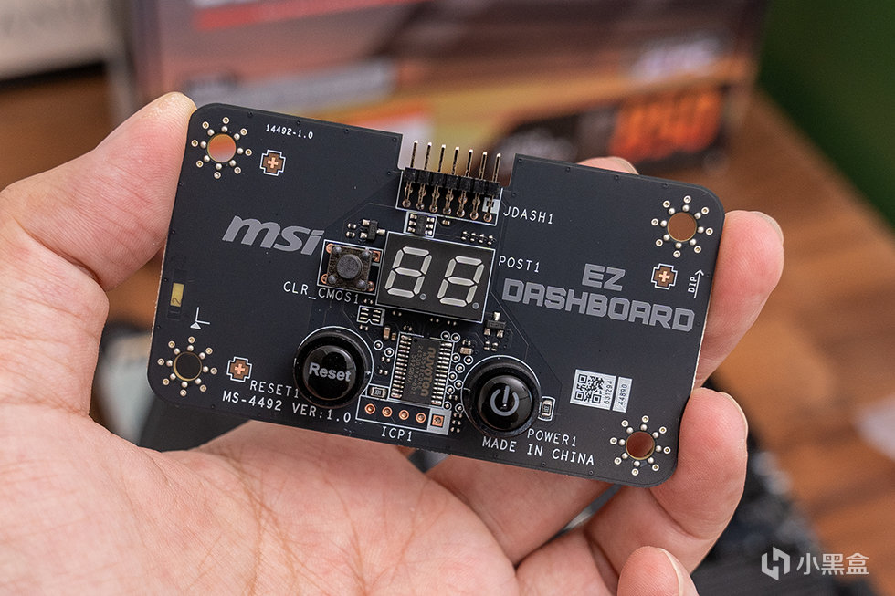 作为一款定位于超频性能的主板,微星B850M POWER特别为超频爱好者配备了独立外置的简易控制模块(EZ Dashboard)。该模块集成有DEBUG指示灯、CMOS清除按键、重启及电源开关按键,有效简化了复杂的超频操作流程。