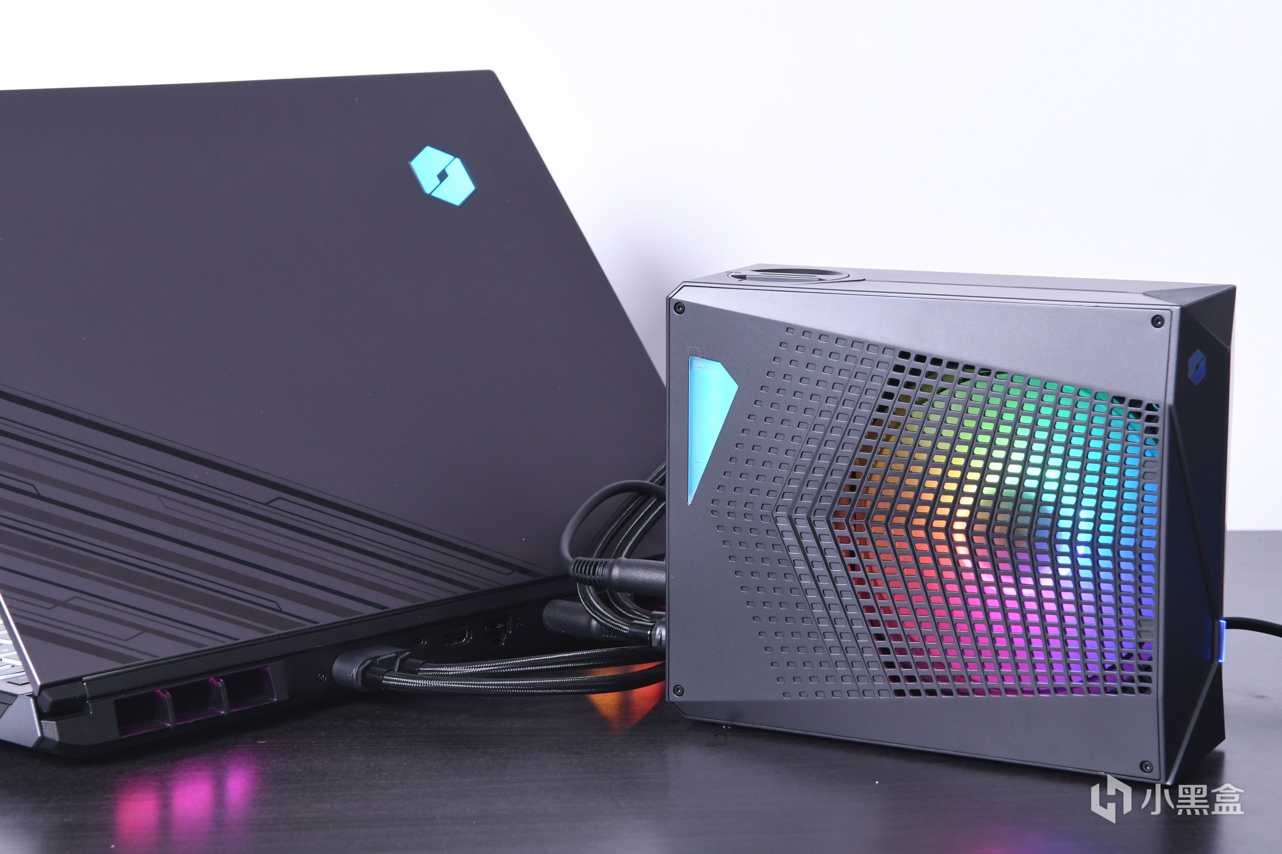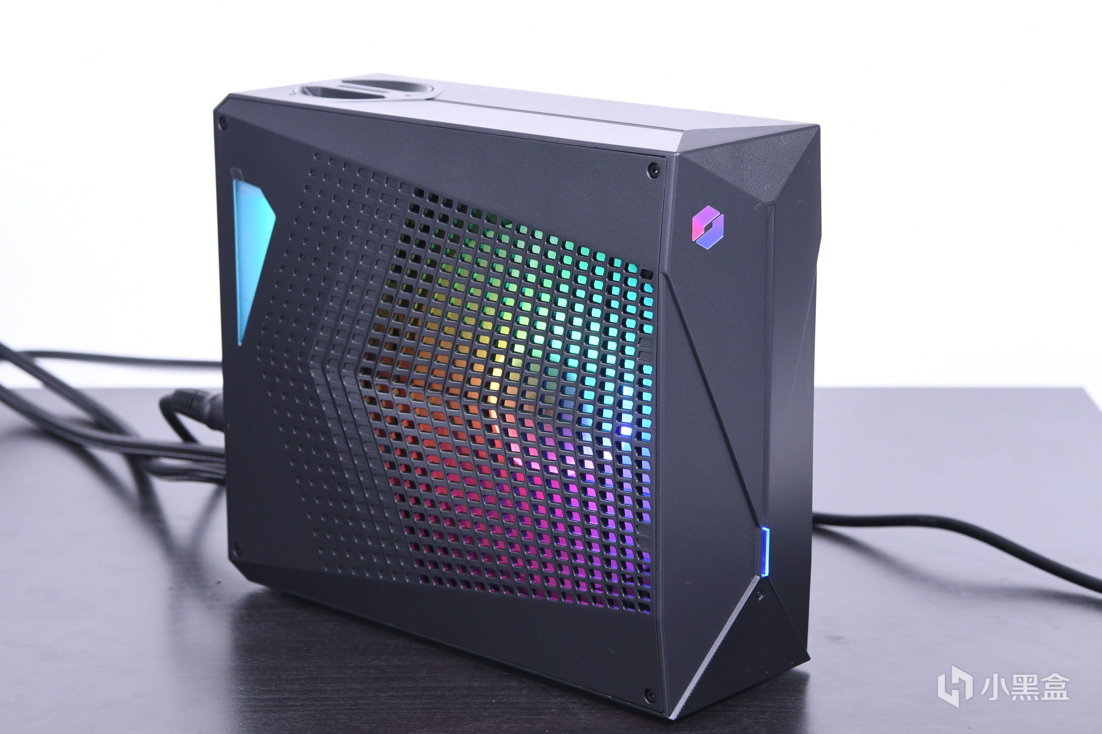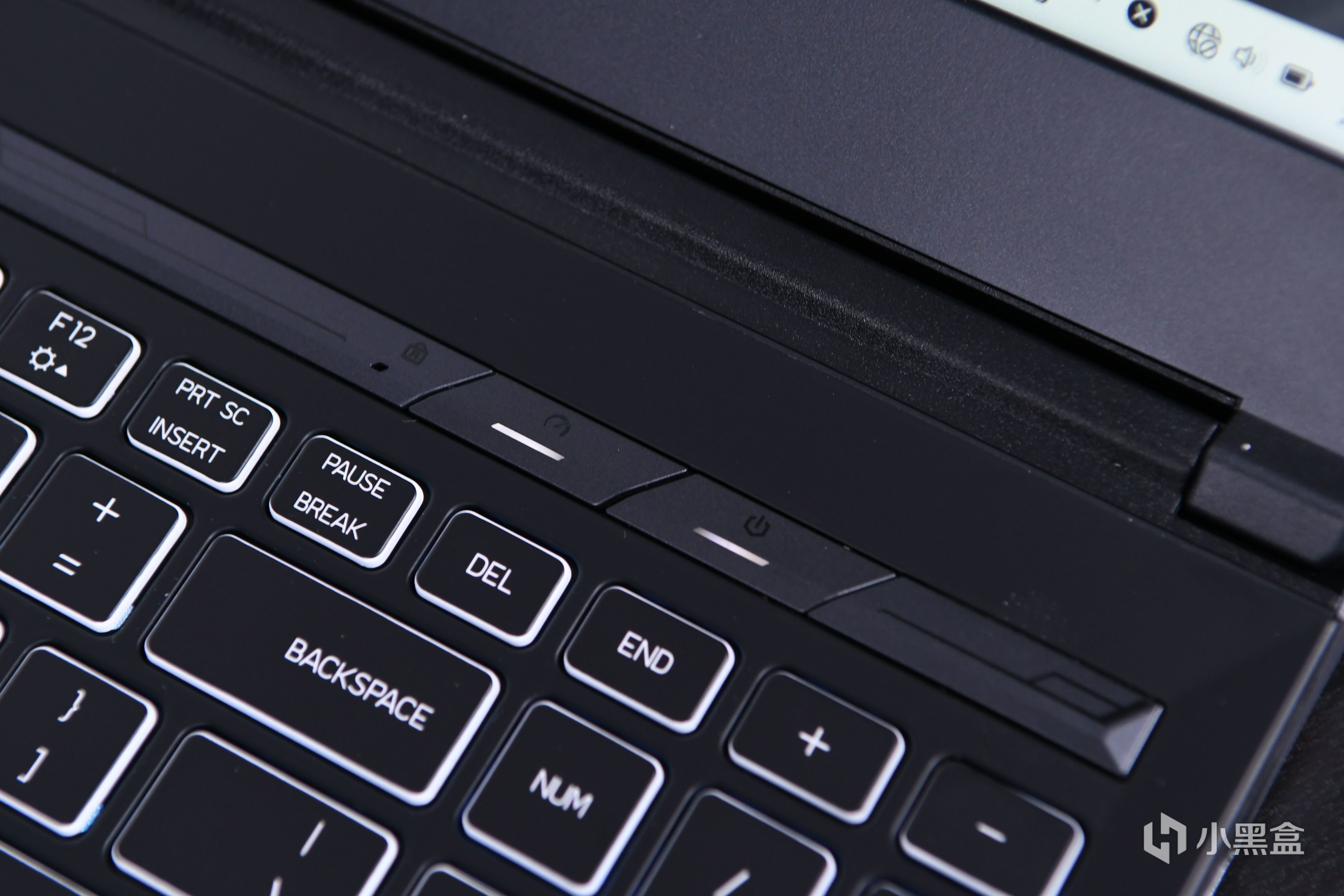 右上角LOGO在不发光状态下也会反射出镭射炫彩效果,开机之后展现1680万色RGB灯效,并能通过内置的电竞中心软件自定义。