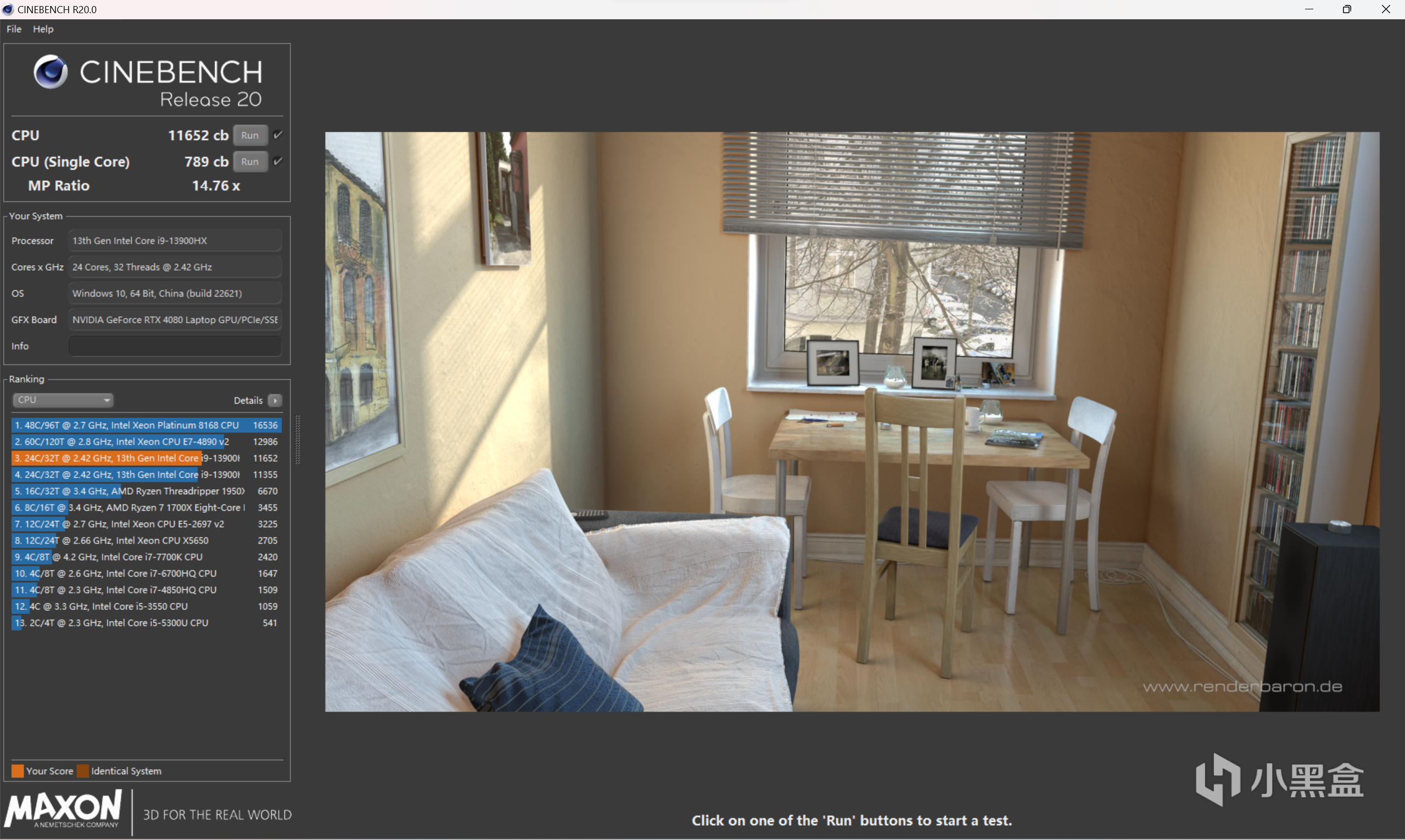 负载更高的CINEBENCH,R20单线程789cb、多线程11652cb,R23单线程2054pts、多线程29907pts,非常强劲!