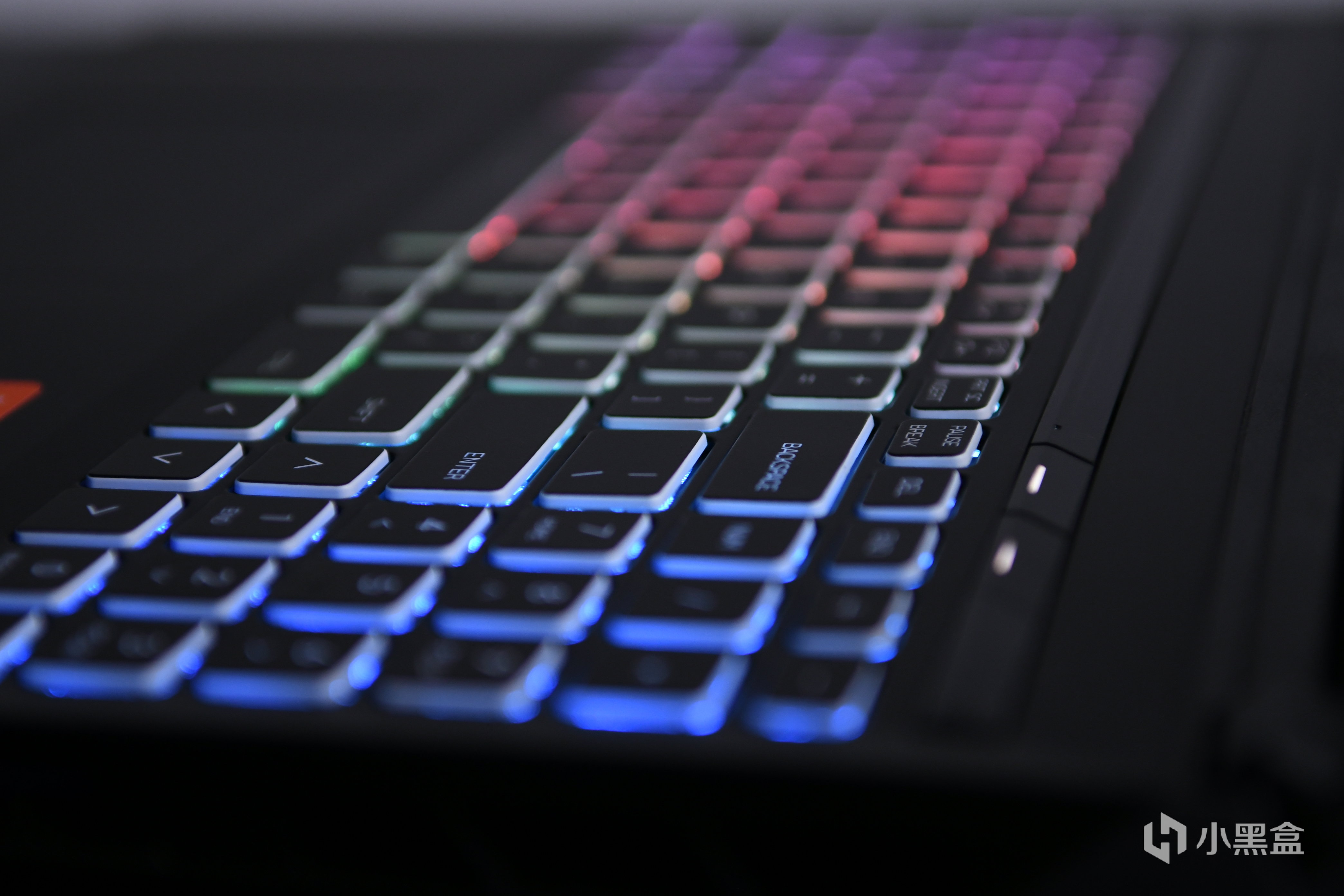 旷世16 Super使用全尺寸RGB背光键盘,具有独立数字小键盘区,方便玩家日常使用。电源按键和运行模式切换键放置在键盘右上角,无需重启快速在办公、均衡、狂暴三种模式中任意切换,以适应不同的使用场景。