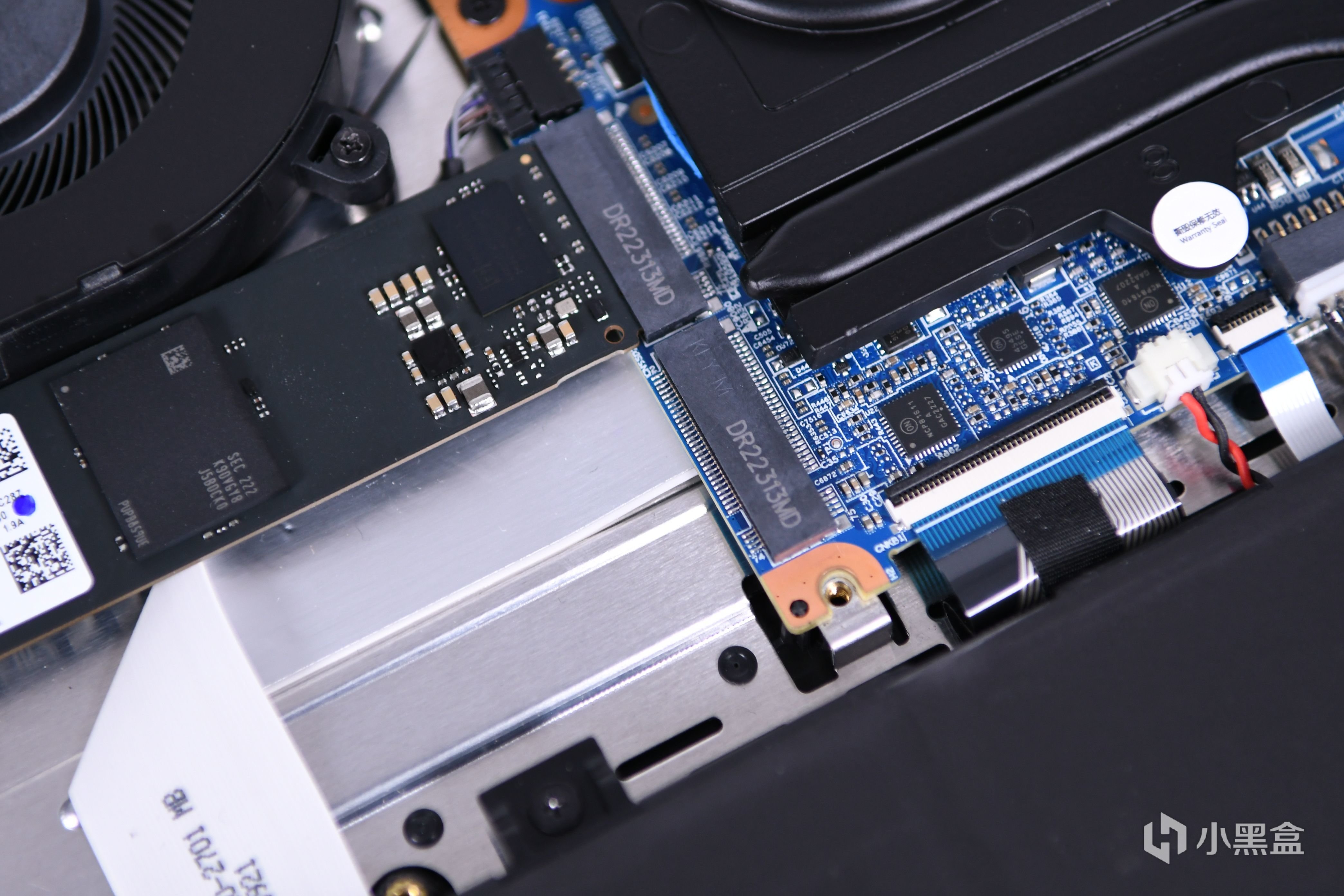 扩展性方面,预留1个PCI-E 4.0 x4 M.2接口,便于用户日后进行升级和扩展。此外,高性能硬盘的发热量与日俱增,D壳内部加入固态硬盘专用散热片,通过蓝色硅胶到热帖将热量传递至鳍片进行散热。