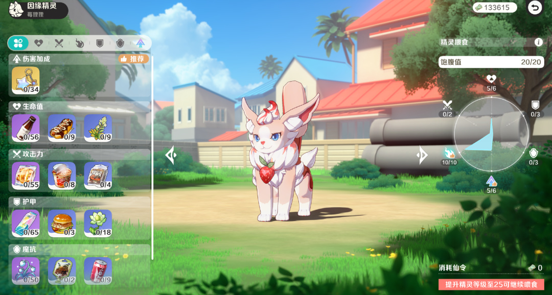 而这一点同样表现在游戏的生态中,《崩坏:因缘精灵》的精灵生态极具生活乐趣,除了常规的睡眠,喜爱等各类动作外,游戏中还会通过奇妙的互动来告诉玩家解密方法。比如“小魔菇”害怕光芒的信息便是在两类精灵的互动中展现出来的,还有些精灵会藏在某些草丛中,需要玩家通过“招引流风”来吹散。