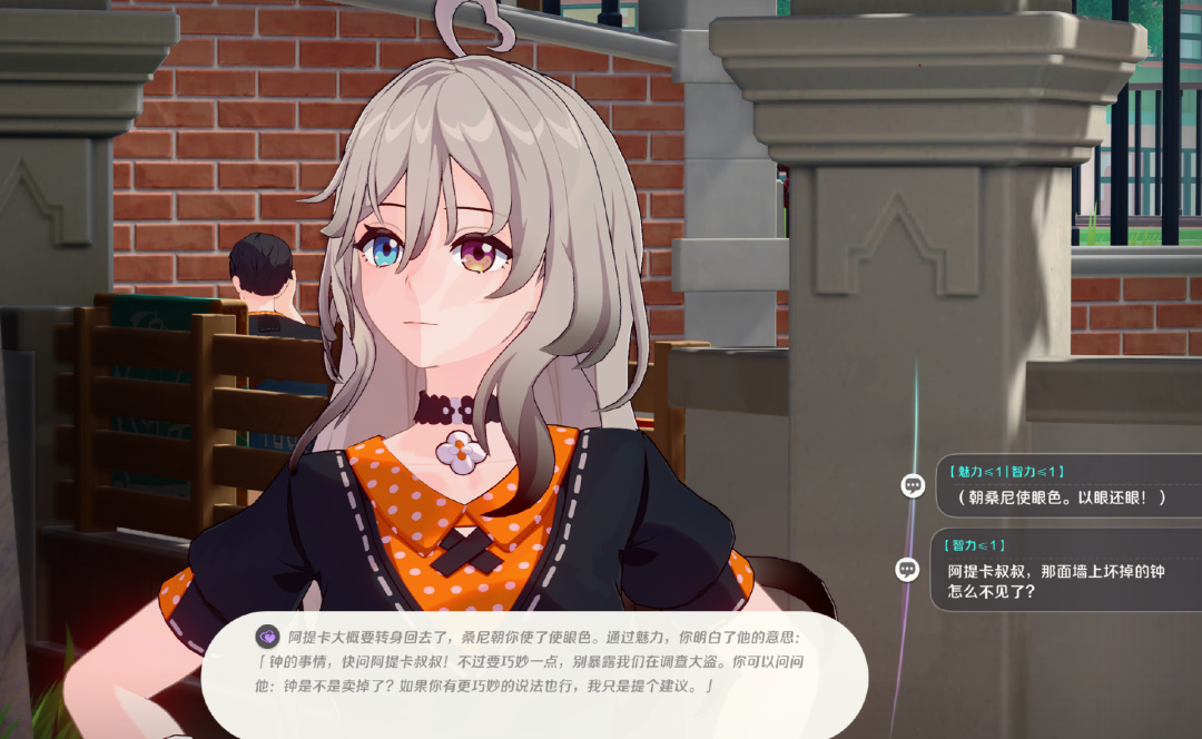 以获得信息为例,你的“威力”高就可以直接对NPC进行威胁,而“魅力”高则能获取其信任从而让她主动告诉你,“智力”高则能通过某些书信来获得。同时这些属性的高低在不同的剧情中发挥的作用也是不同的,比如在与孩童玩乐的剧情中,只有你“智力”足够低才能触发某些对话获得孩童的信任。