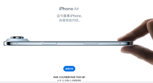 作为苹果产品的新一代崭新机型iPhone Air 9月10日凌晨正式发布。