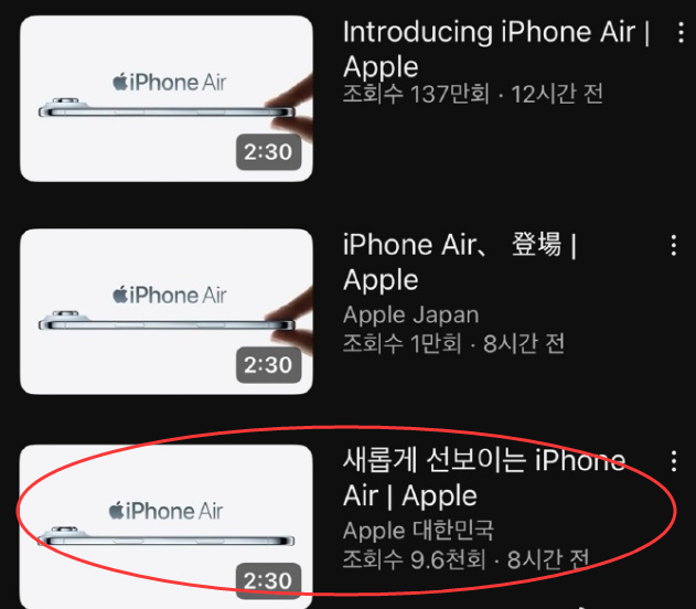 苹果为了展示 iPhone Air 的轻薄设计,在官网的详情页面为新机添加了单手捏合 iPhone Air 的动画效果。但该动画并未上线韩国官网。