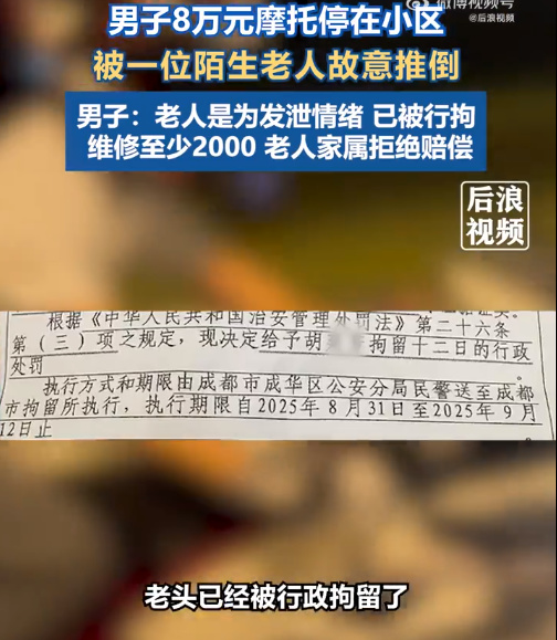 目前,推倒刘先生摩托车的老人已被行拘12天。