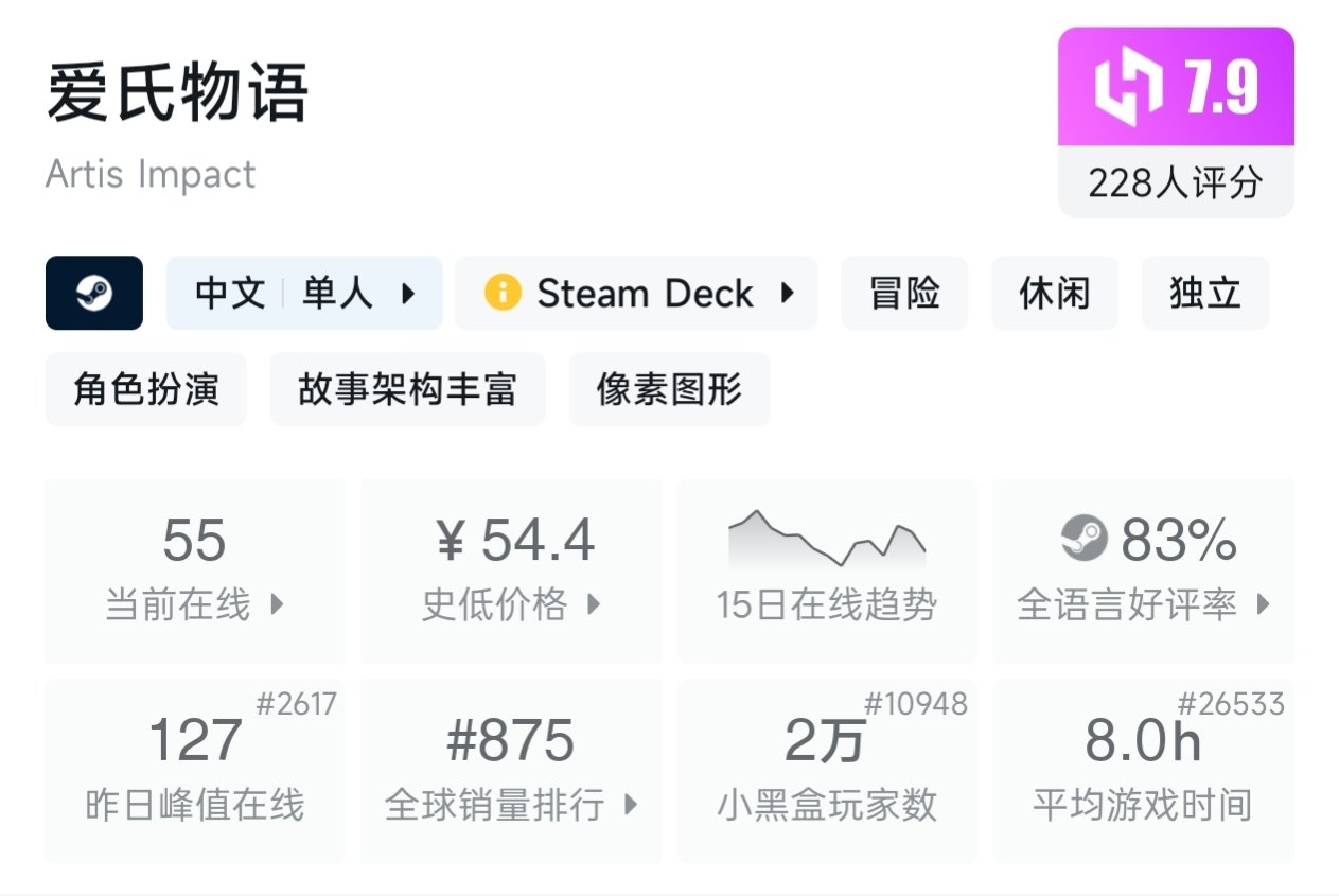 遊戲近期評價以及全部評價在Steam商店均爲特別好評!