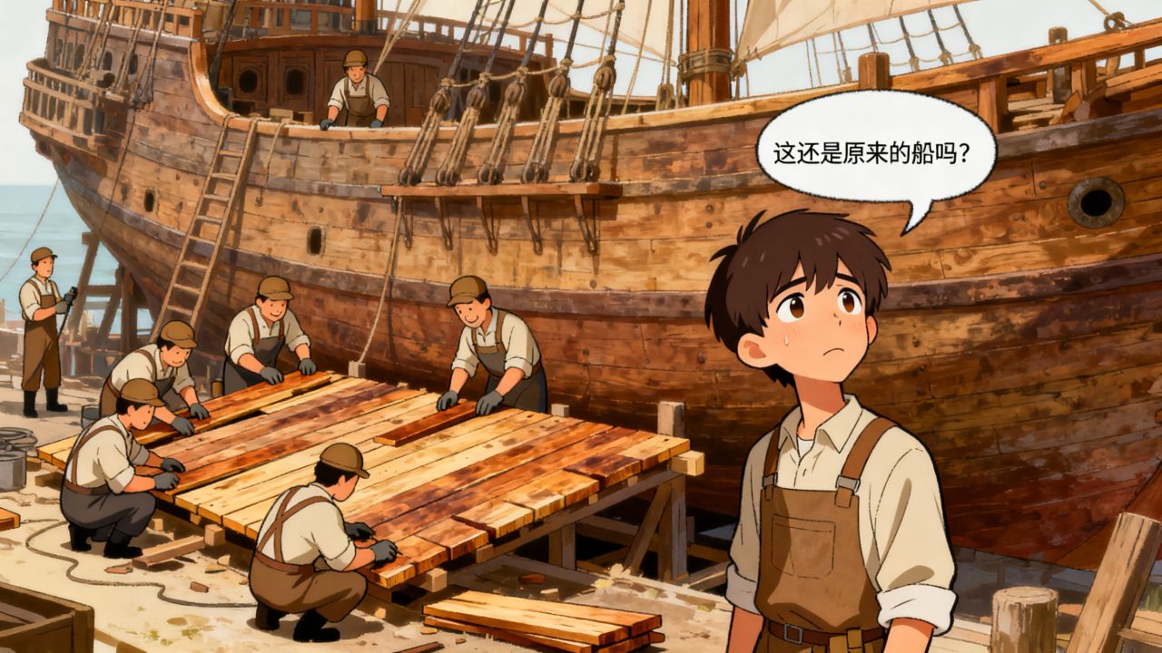 这是一个关于“身份认同”的古老悖论。假设有一艘名叫“忒修斯”的木船,在海上航行了几百年。在这期间,它的木板会逐渐腐烂,需要被替换。直到有一天,这艘船上所有的木板都被换过了一遍,没有一块是原来的。那么问题来了:这艘船还是原来的“忒修斯之船”吗?