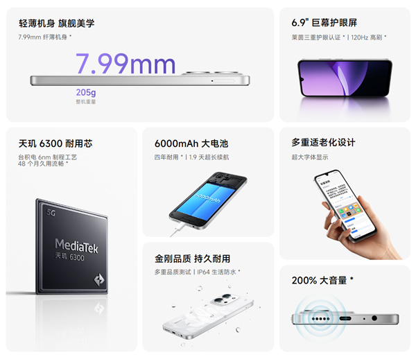 预装澎湃OS 2系统,具备超大字体显示功能,扬声器支持200%超大音量,方便老年用户使用一年。