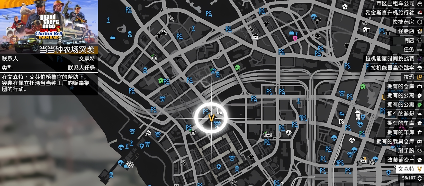 需要前往地圖V標誌,完成“噹噹鍾農場突襲”中的黑心基金任務才能開啓派遣工作系列任務。