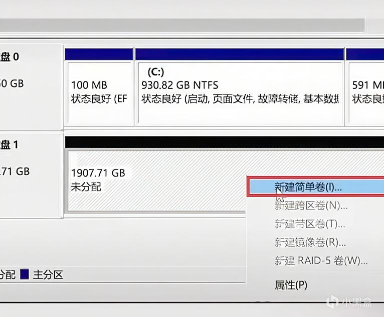 正常情况下是这样的。接下来我们右键点击,新建简单卷