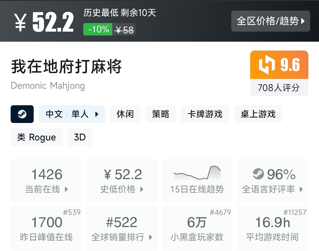 同样是年轻人的第一款麻将游戏,神秘的地府特色与众多美少女极其吸睛,上头的主题曲让人沉溺其中。此外,游戏在近期还迎来了一波大更新,不仅有新boss地藏王,同时还有日语配音实装。更让人激动的是,我地麻和山河旅探有捆绑包,属于是双厨狂喜。