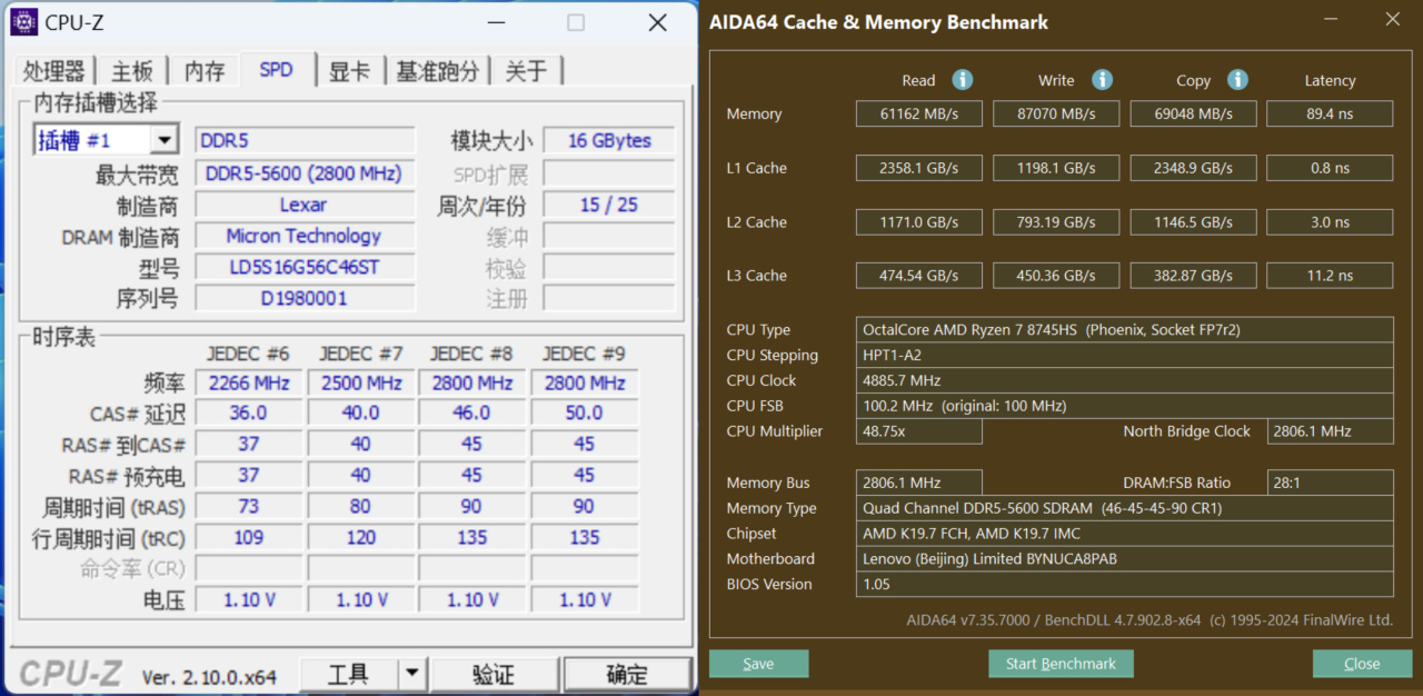 百应在内存规格上给的非常大气,一般来说同规格的内存条,16GB单根起码得350元,90ns不到的延迟对于笔记本内存条来说十分不错,不少4800Mhz/5200Mhz内存得干到100ns以往。