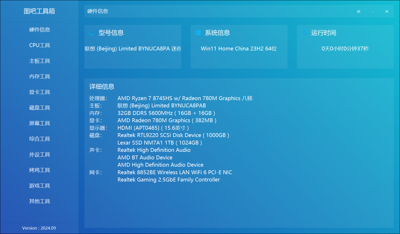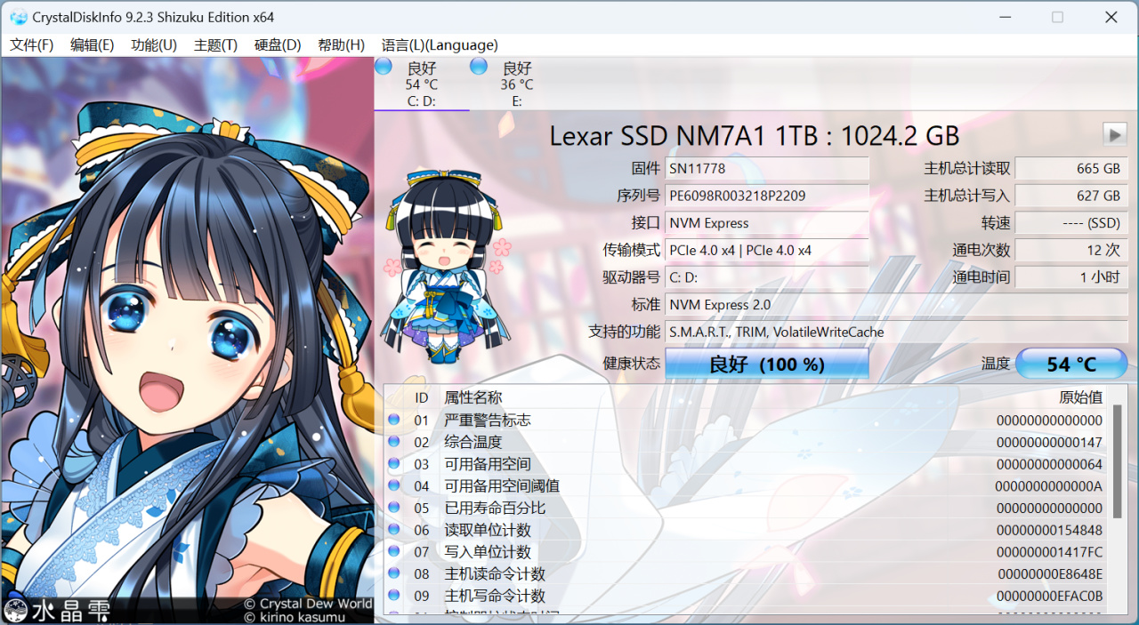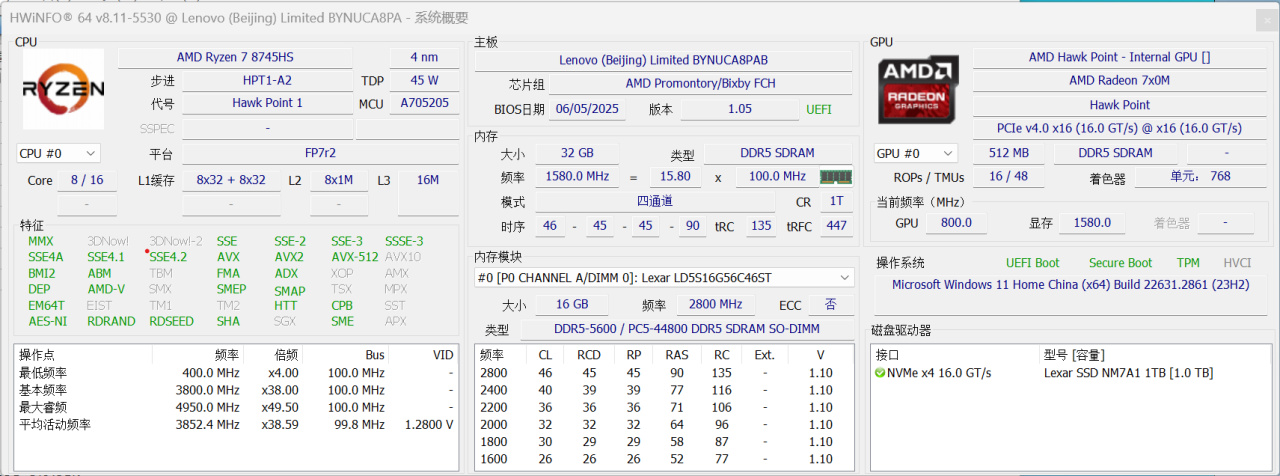 硬盘为Lexar NM7A1 1TB,PCIe 4.0中速固态,OEM定制固态,有点抠门,联芸1602A主控,但绝对算得上原厂片,发热控制比较好,很适合内部空间寸土寸金的小主机。