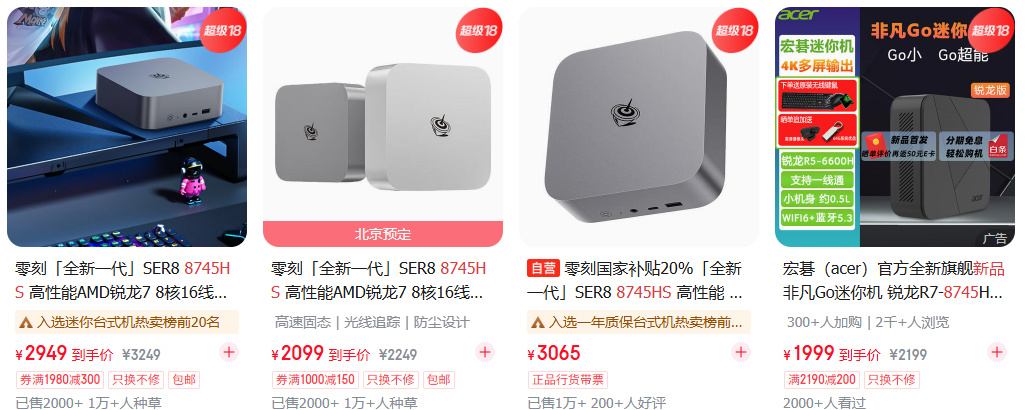 一般8745HS的小主机,准系统得2100元左右,32GB+1TB的配置得3000元左右,还不支持国补。百应在给到企业级服务和硬件的同时,还很有性价比,国补前3199元(更稳定的BIOS+硬件),国补后2559元的价格性价比的确是拉满了。