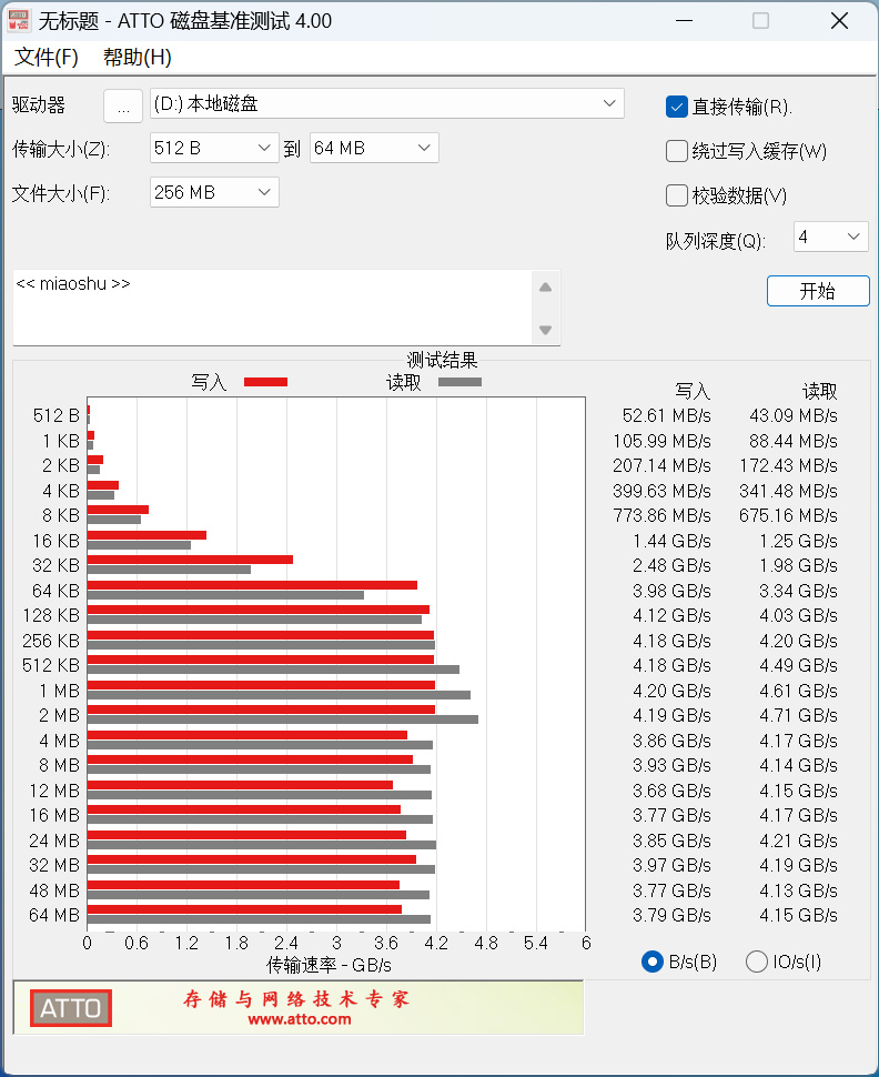 而ATTO测试成绩4K效果又很好,毕竟测试还是图一乐,实际使用完全没问题,拷贝游戏啥的连续大文件读写都比较稳。