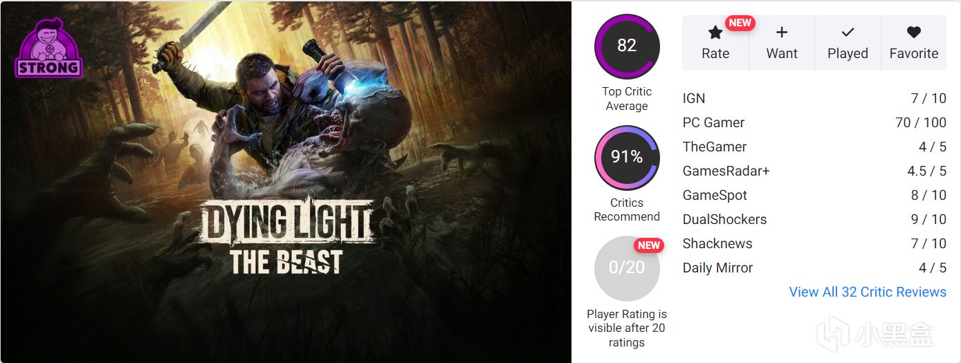 Opencritic(收录32家媒体评分,OpenCritic82分,推荐指数91%)