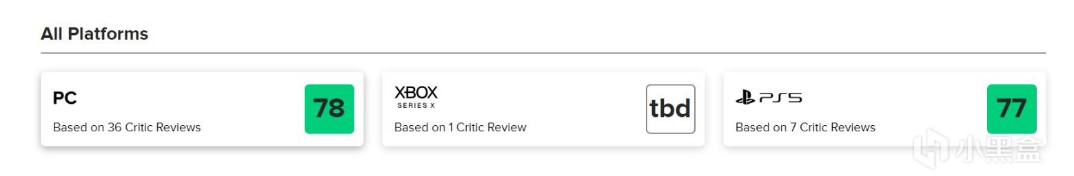 Metacritic(PS5端收录7家媒体评分,Metascore77分;PC端收录36家媒体评分,Metascore78分)