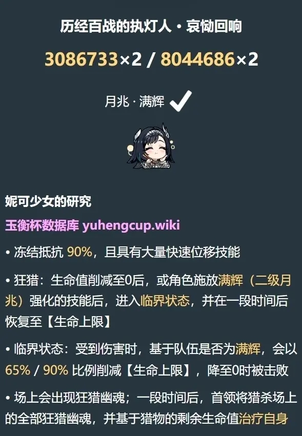 3.被满辉强化的技能:必须在天赋中显示“月兆:满辉”字样,且队伍处于满辉状态的技能才叫作被满辉强化的技能!!!