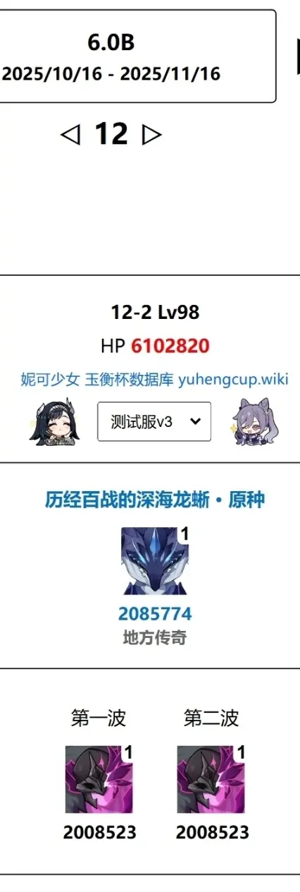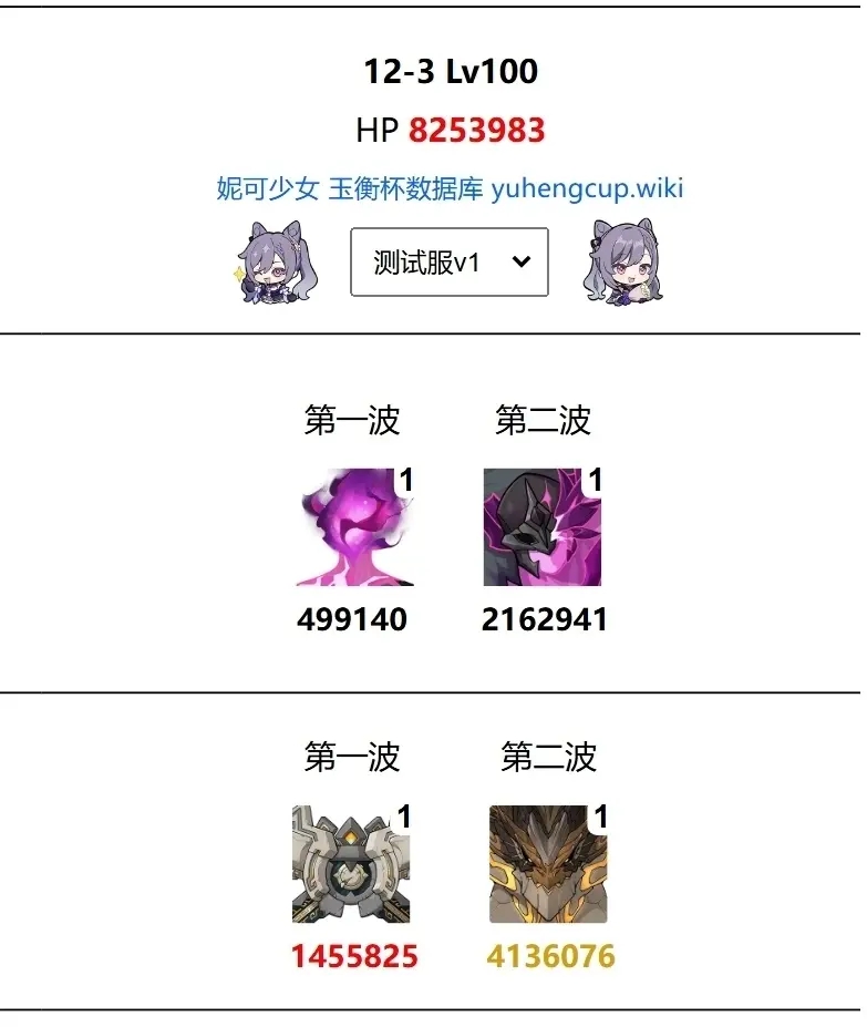4.此怪物会在6.0B 12-1下半深境螺旋(血量160w×2)及6.1幽境危战(n5血量308w×2,n6血量804w×2)中出现。在6.1幽境危战中,拥有冻结抵抗90%。