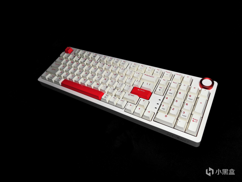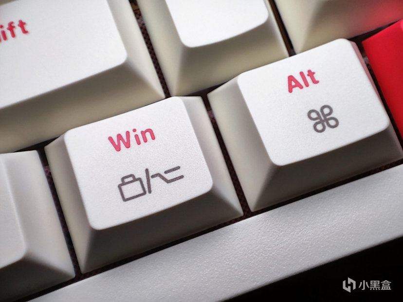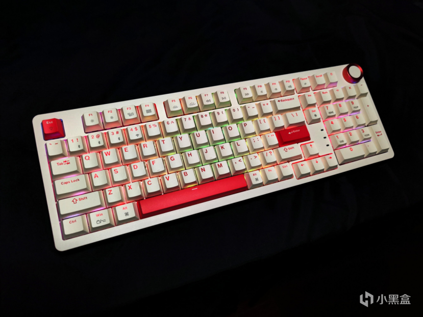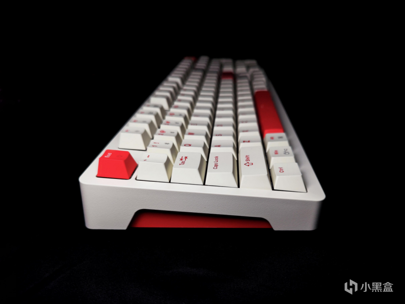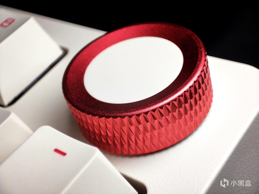 但在鍵帽上的字符、Esc鍵、Space空格鍵、Enter回車鍵、右上角旋鈕上的主色,採用了略帶點粉的桃紅色,比起之前的元祖灰和落日橙撞色設計大膽了許多。