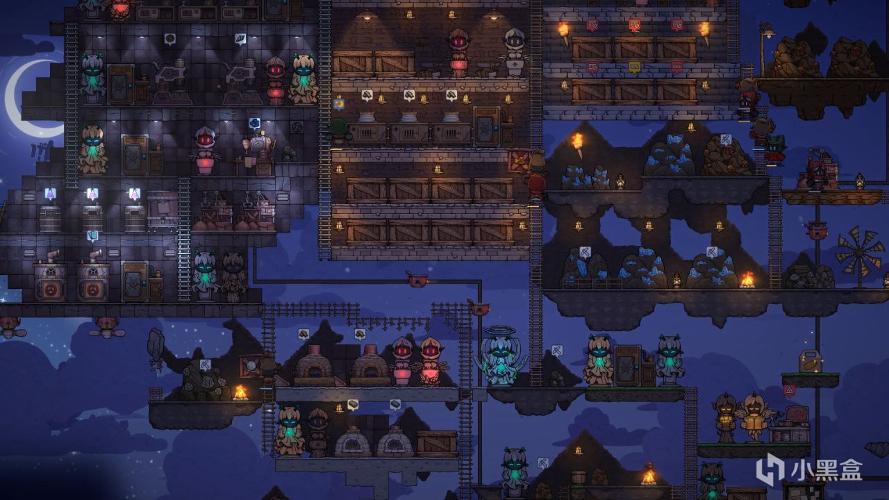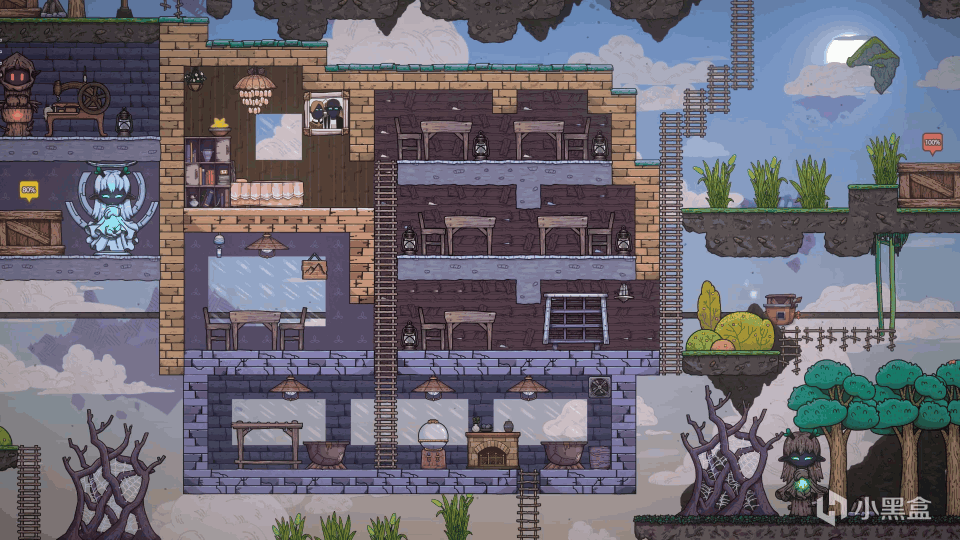 你要带他们砍树、挖矿、造房子,慢慢研究科技,把一块块漂浮岛屿拼接起来,搭出一个属于你自己的云端世界。