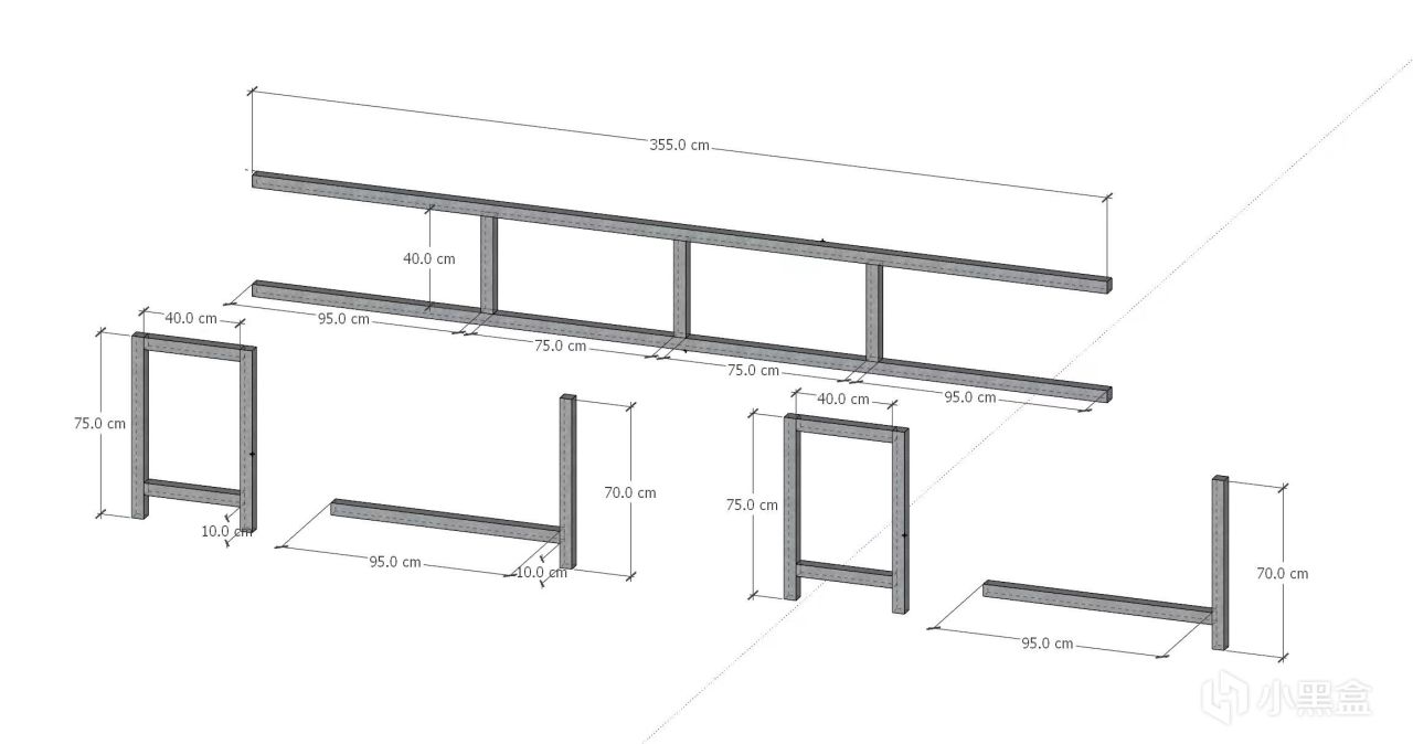 主包的長桌長度有3.8m,市場上很難直接購買到成品的桌腿,主包自己設計了一套桌腿,找的朋友用5050的型材定做了一套。起初擔心中間架空的距離比較長,桌子中間會下陷,等安裝完成以後發現擔心完全是多餘的,5050的型材比我想象的要結實的多。