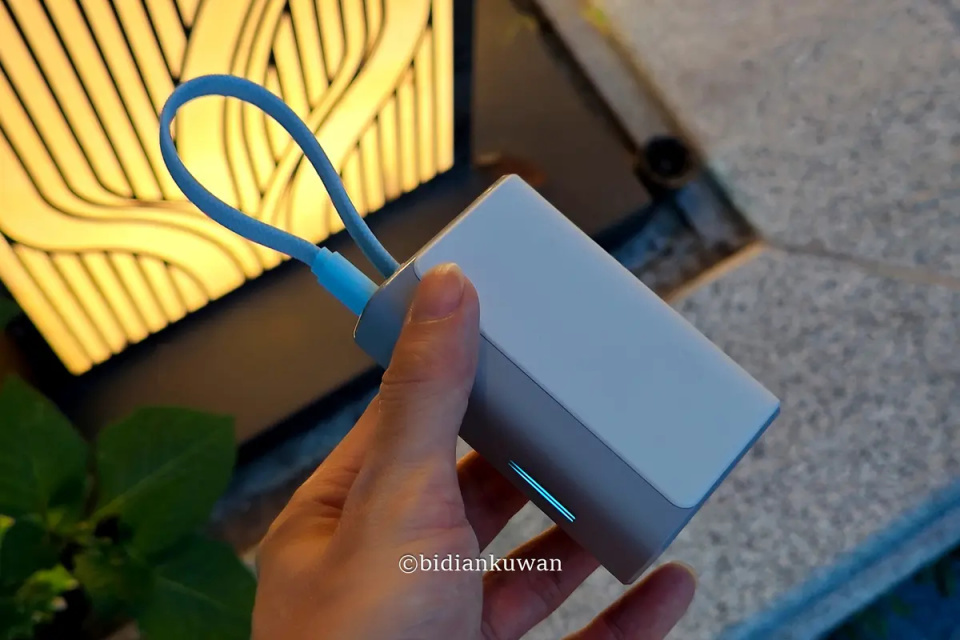上图右侧的酷态科CP13自带线电能块(LPB100),容量10000mAh,1A+C+自带C线设计,最高33W双向快充。由于它的形态比较扁,揣入衣袋和裤袋不鼓囊,单手双持也会舒服许多,我晚上散步经常带它出门。而图左那个柱形的酷态科10号超级电能棒,我通勤、出差时用得更多。