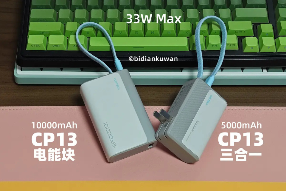 如果1万电量也嫌重,你还可以选择5000mAh的酷态科CP13三合一充电器(BA301),它的亮点是有可折叠插脚,能够作为自带线充电器使用。它的设计语言与C13电能块一致,C口都支持33W Max双向快充,重量只有167克,比CP13电能块负担更轻。