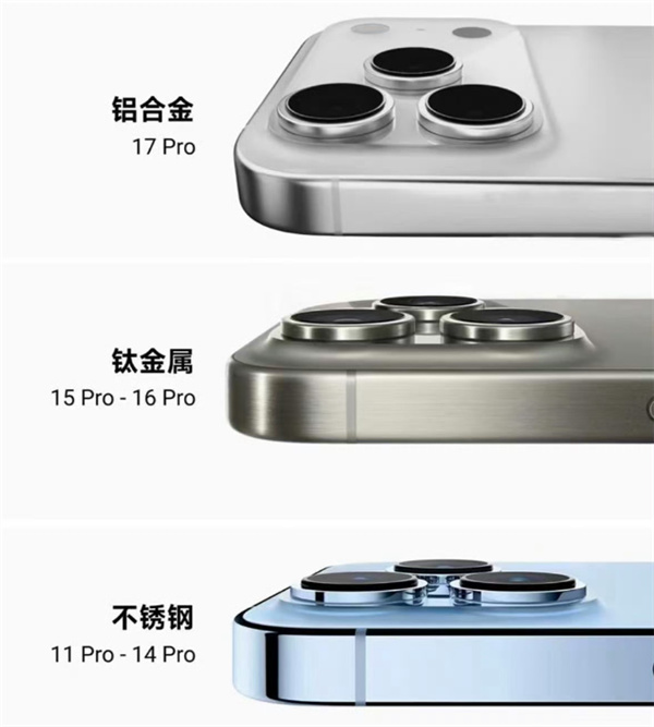蘋果從iPhone X開始使用不鏽鋼機身,在iPhone 11系列推出Pro系列時也延續了不鏽鋼機身,直到iPhone 15 Pro更換鈦金屬。