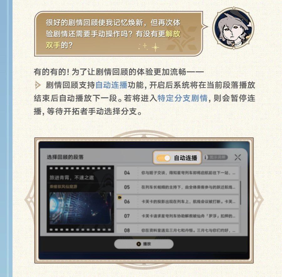 「剧情回顾」支持回看过往剧情对话跳过、剧情梗概功能补全