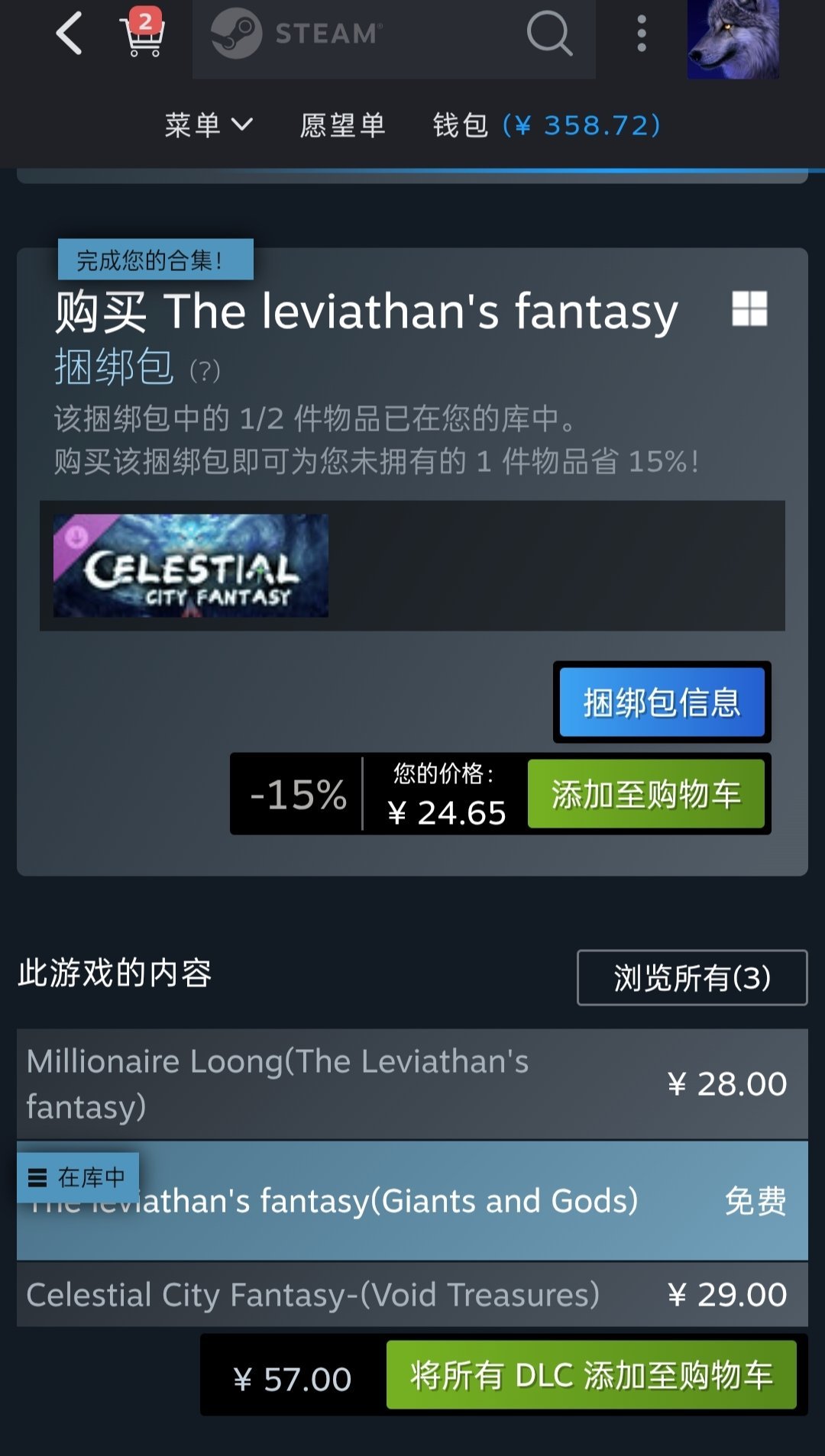 這時候點擊添加願望單,然後進去願望單裏面搜這個遊戲名字,發現在願望單裏面是可以直接添加到庫的