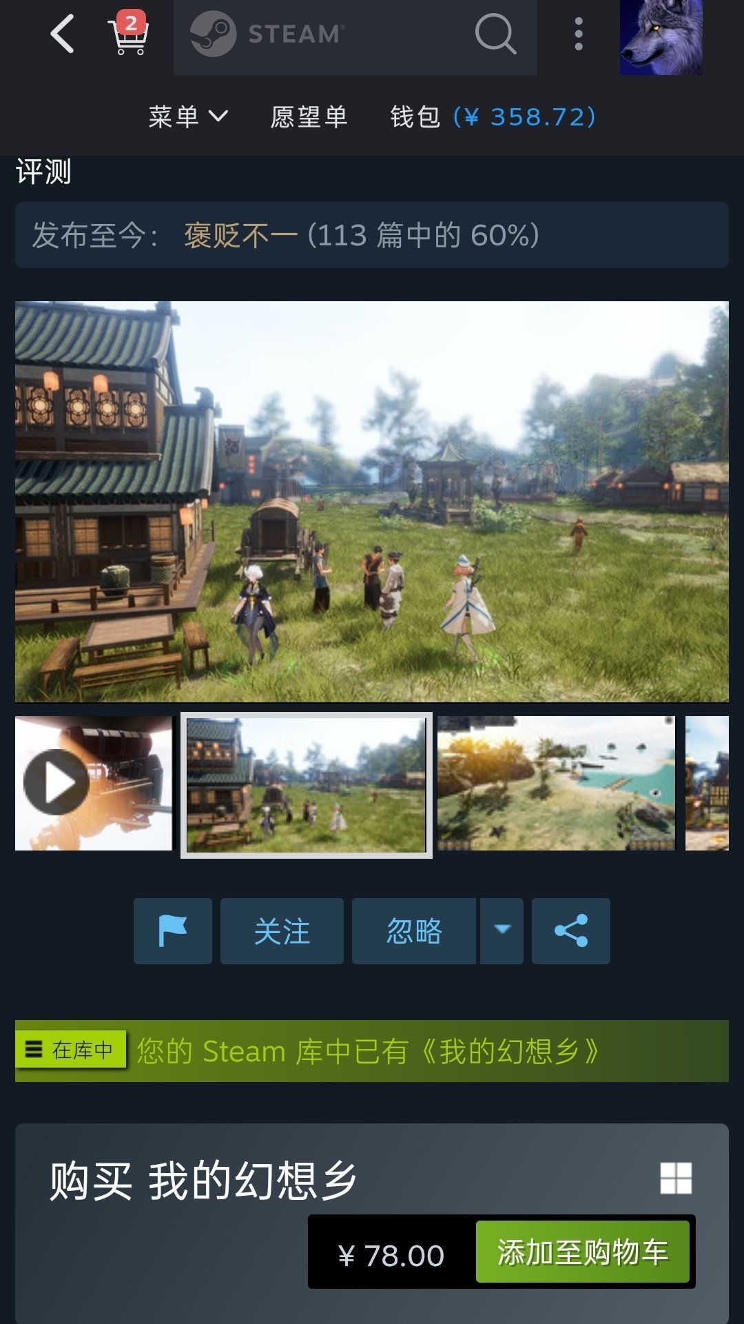小夥伴們大家好哦,今天有一個遊戲可以限時免費領取啦,本着可以不玩但是不能沒有的原則,看到了就趕緊給大家分享一下,本次可以免費領取的遊戲是原價78的遊戲,我的幻想鄉