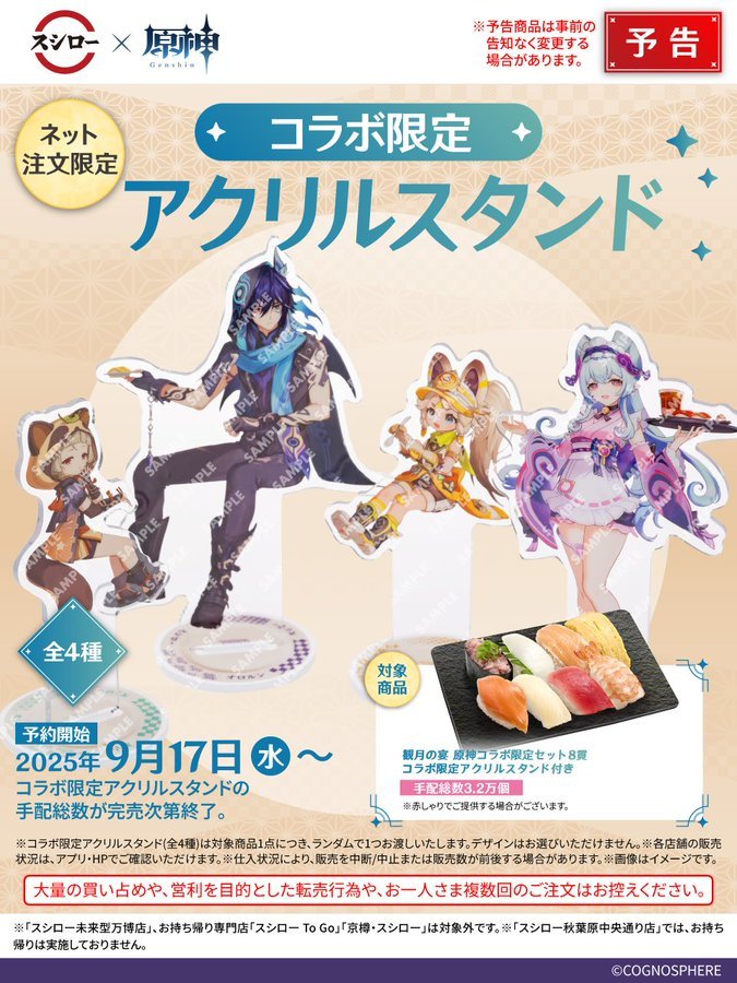 2025年9月10日,热门开放世界游戏《原神》与日本知名回转寿司品牌“寿司郎”正式开启联动活动,主题为“观月之宴”。本次合作不仅带来了多款限定寿司、甜点及软饮套餐,还在日本国范围内掀起一股“提瓦特风味”热潮。