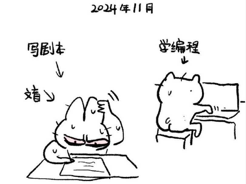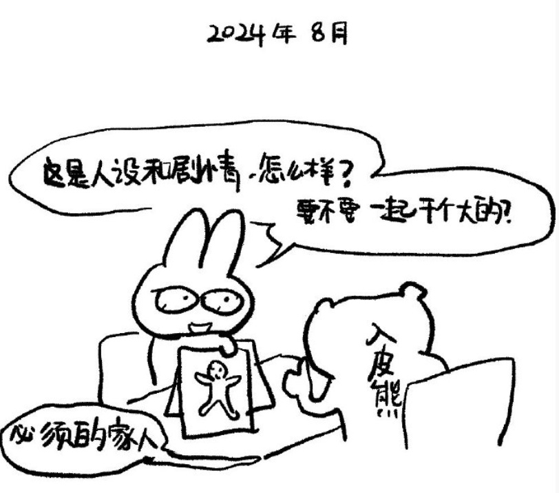 修摩托曾在7月发布的条漫中回忆,从立项开始的那天,就一直在担心剧作水平无法达标;人皮熊在早期出现的卡通形象中,也有很多是忙碌学习编程的身影。