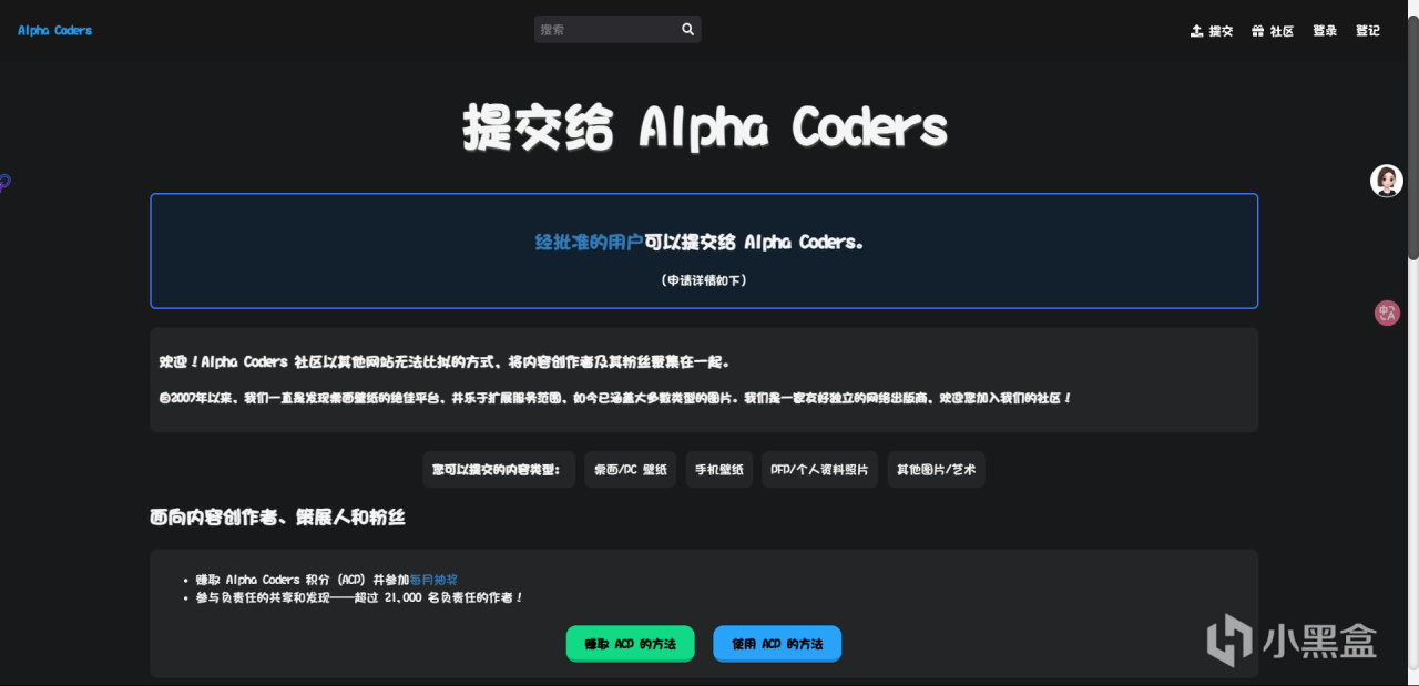 当然这个网站也支持个人用户上传,假如你有好看的壁纸,你也可以加入社区进行上传,只需要注册登录一下Alpha Coders 账户,并且上传后经批准后就可以发布了。上传发布后可以赚取 Alpha Coders 积分 (ACP) 并参加每月抽奖。