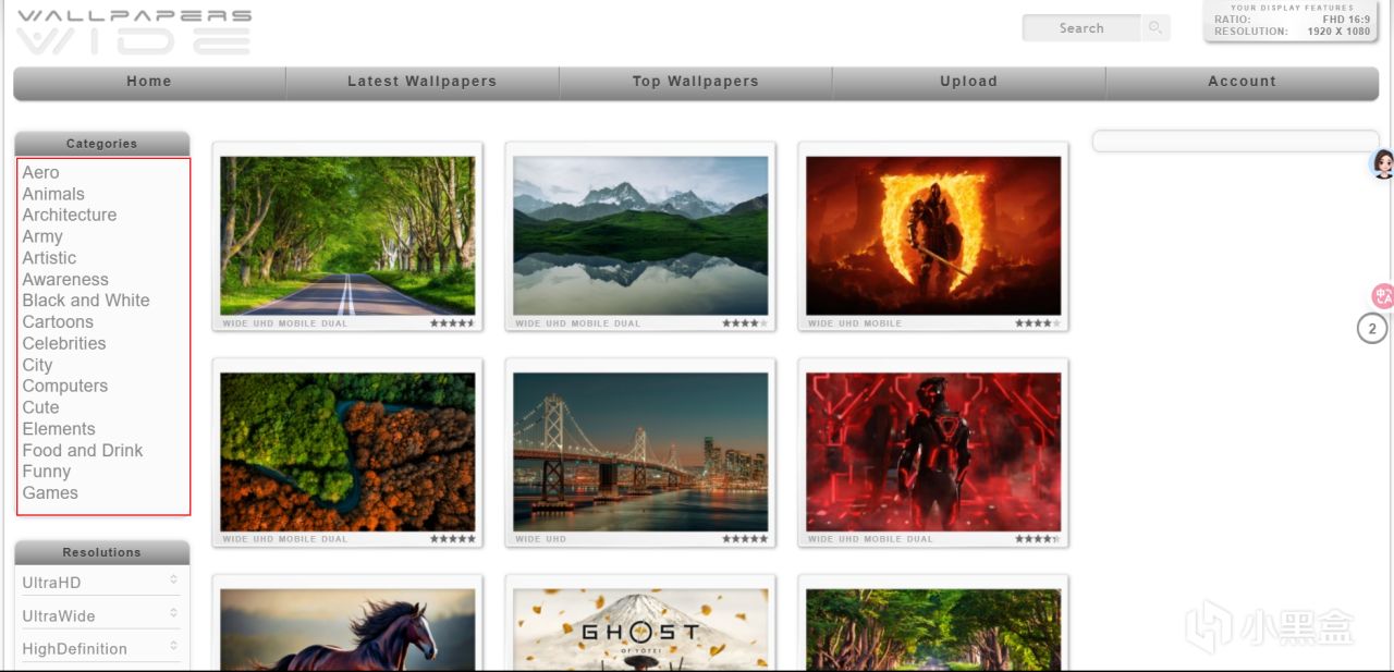 同样是一个拥有高质量、高分辨率的壁纸网站,也是不需要注册登录直接下载。在左边可以看到已经做好了分类。