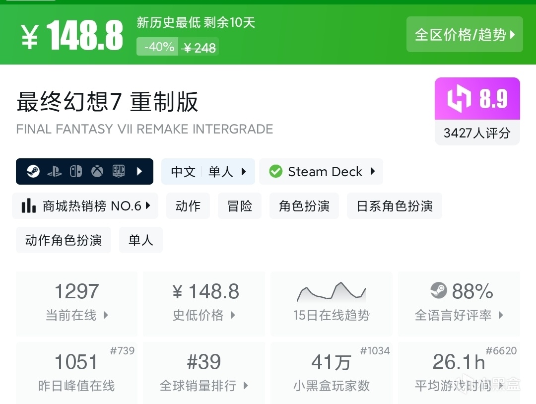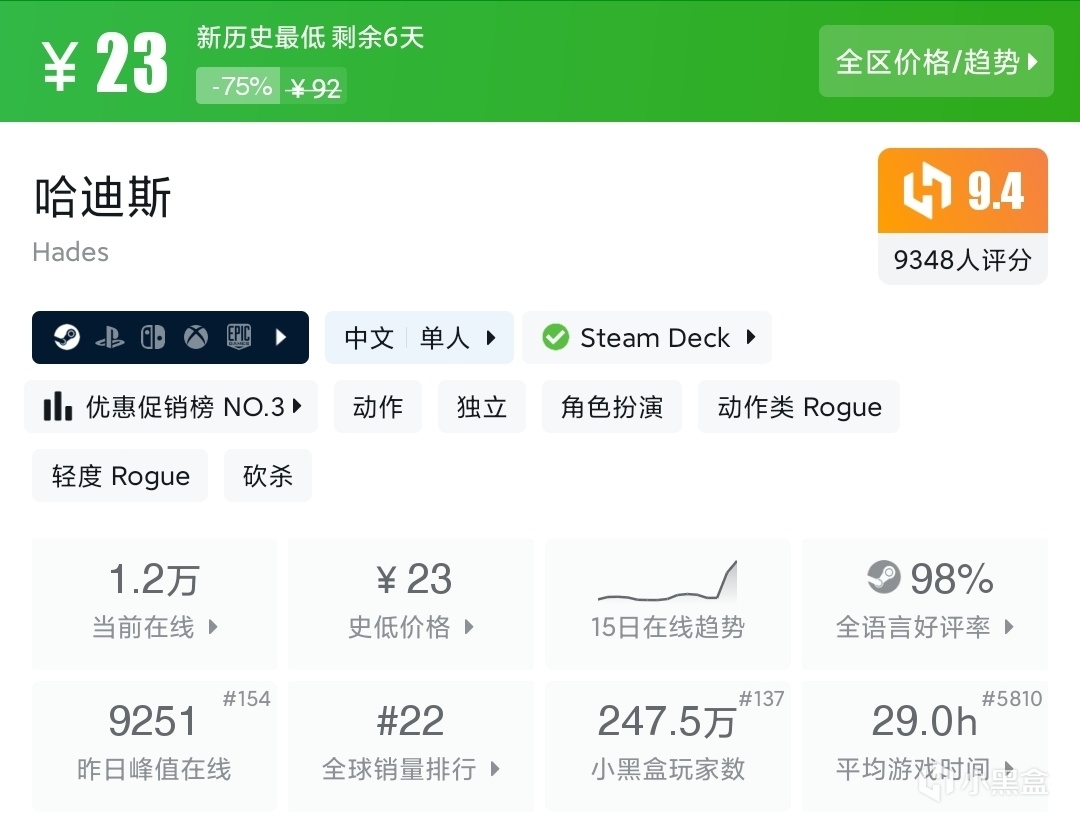 很多廠商也提前開啓了搶跑折扣。但對於玩家來說,照着新史低買,短時間是絕對不會背刺的。