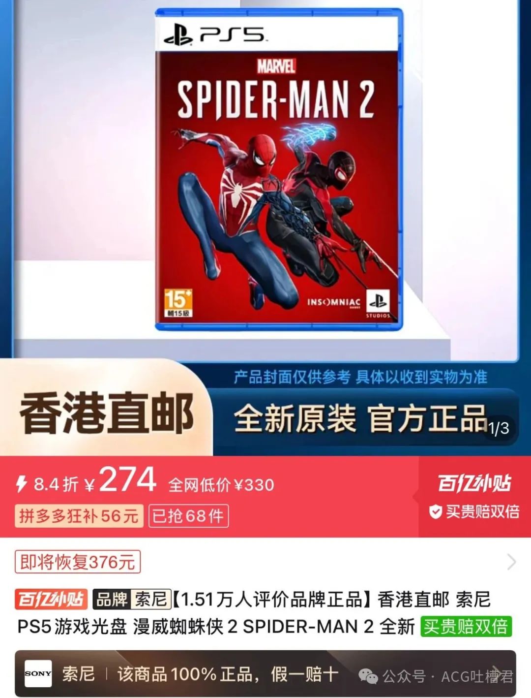 3.PS5遊戲《漫威蜘蛛俠2》港版中文274元全新包郵,實體版價格比之前漲了20多元,該作首發版曾經到四百多,現在屬於正常價格,個人覺得可以入手了,如果覺得價格還是有點高可以再等等。