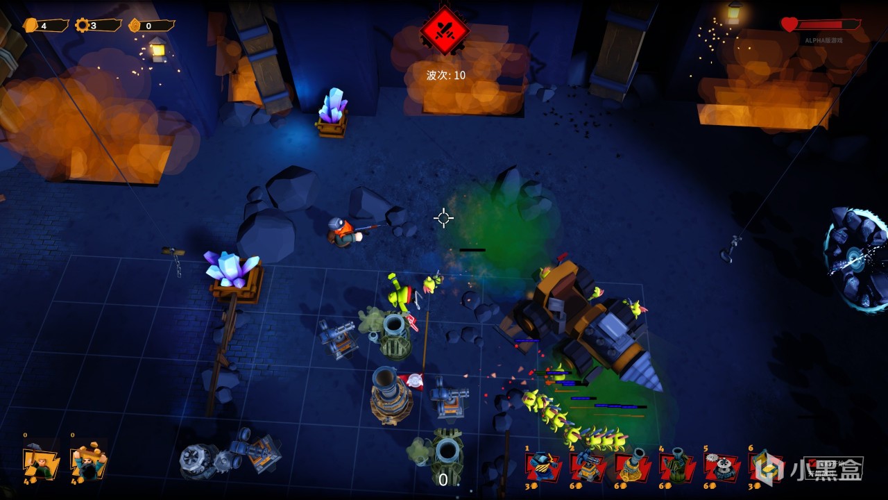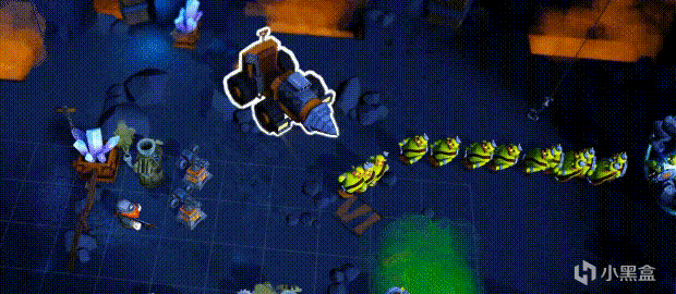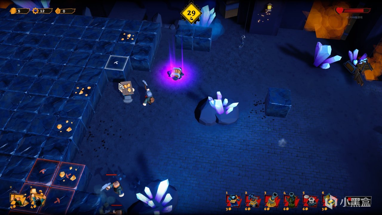 遊戲美術相當可愛,無論是努力挖礦的礦工還是死了都要衝哥布林的建模都走的可愛風路線,讓我們在努力經營暴殺哥布林的過程中都不會感到一點血腥和乏味。遊戲的戰場也是涇渭分明,左邊礦場右邊戰場,運輸工搬了礦送往中間的礦機,哥布林想要摧毀礦機也是每回合不停的派軍衝鋒,整個遊戲節奏還是不錯的。