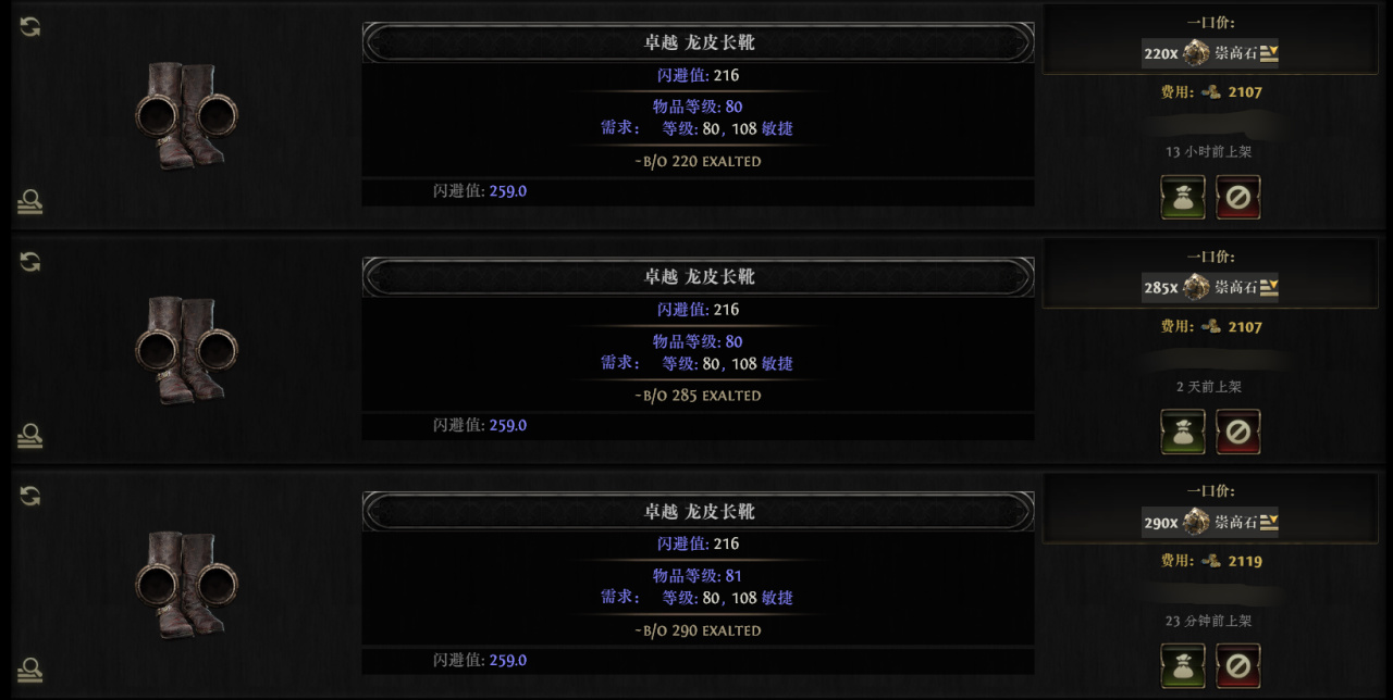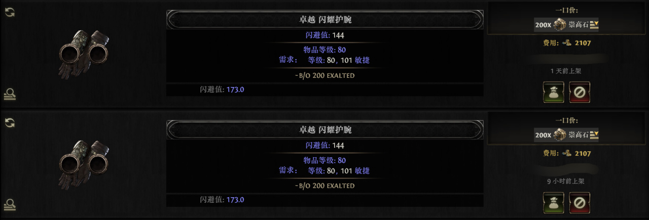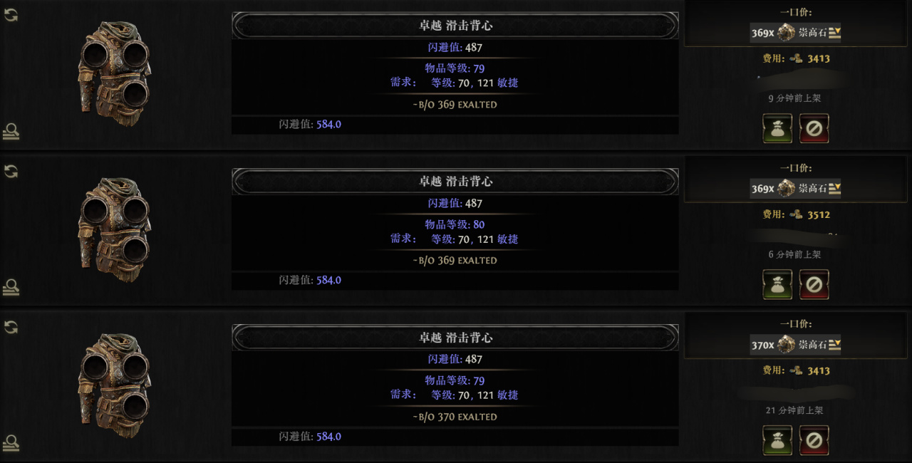 綜合點評:純閃底材依舊是遙遙領先,當前版本閃避流生存能力極強,土豪玩家打造 “零猝死” BD時必搶,三孔卓越滑擊背心甚至能賣出更高價,是白裝裏的硬通貨。