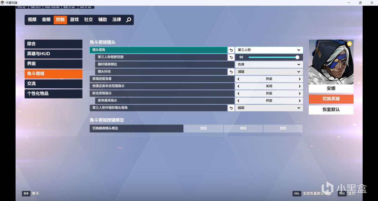 注意:安娜右键可以调成第三人称,不用再慢慢的开镜找人。如图所示,类似于堡垒之夜的不带镜的右键瞄准。实战比较舒服,具体调整看图。