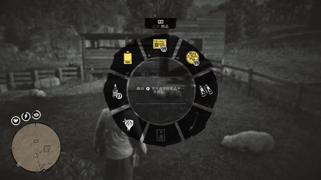 首先来到羊圈直接拿出飞刀打一只羊,打中后开始喝酒,喝到第五瓶的时候站在后面并噶掉羊就可以了,总的来说没有狼心小饰物要简单一点。由于我没有其他的存档就不好展示了。