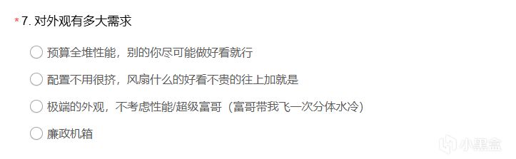 我前面配的几台电脑每一台都是从零配起的,每一次都要问很多的问题来确定每一个硬件的选择,后来发觉可以做一个问卷来一次性对一个电脑小白定制一套配置,这个问卷我在黑盒发过一次,但是黑盒貌似连问卷星都ban