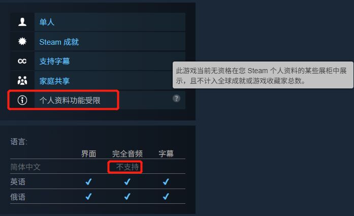 本遊戲不支持中文,並且還個人資料受限(不計入賬號遊戲數據統計,並無資格在steam個人資料的某些遊戲展櫃展示)。介意的uu們請謹慎領取