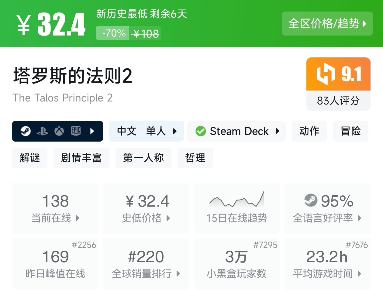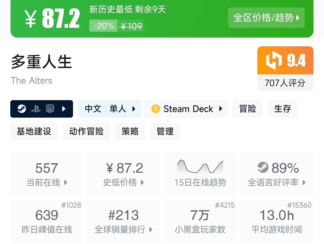 大家好,没错,又是我,你们的老朋友亦然,秋促即将到来,秋促即将于9月30日开始,当然,现在已经有很多游戏抢跑了秋促,包括一些人气游戏和大作,其中还有很多新史低,其实新史低游戏买起来最有安全感,因为在很长一段时间都不会更低,我将为各位进行一个汇总,希望我的汇总,能够帮助各位盒友挑选心仪的游戏。