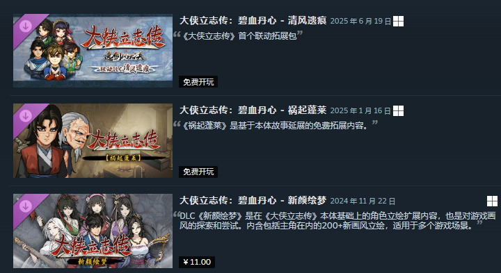 对于游戏玩法的拓展,其实武侠游戏是很难做出非常大的创新的,即使是号称自由度非常高的《大侠》实际上几条DLC也没有影响游戏的主要玩法,基本上还是在剧情上面做延伸。
